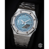 This exquisite timepiece features a robust case crafted from 316L stainless steel, known for its durability and corrosion resistance. The case measures 44mm in diameter and 11.8mm in thickness, providing a substantial yet comfortable presence on the wrist. Its horn-to-horn length is 54mm, ensuring a balanced fit for a variety of wrist sizes. The watch is secured with a screwed crown made from the same high-grade stainless steel, enhancing its water resistance and longevity.